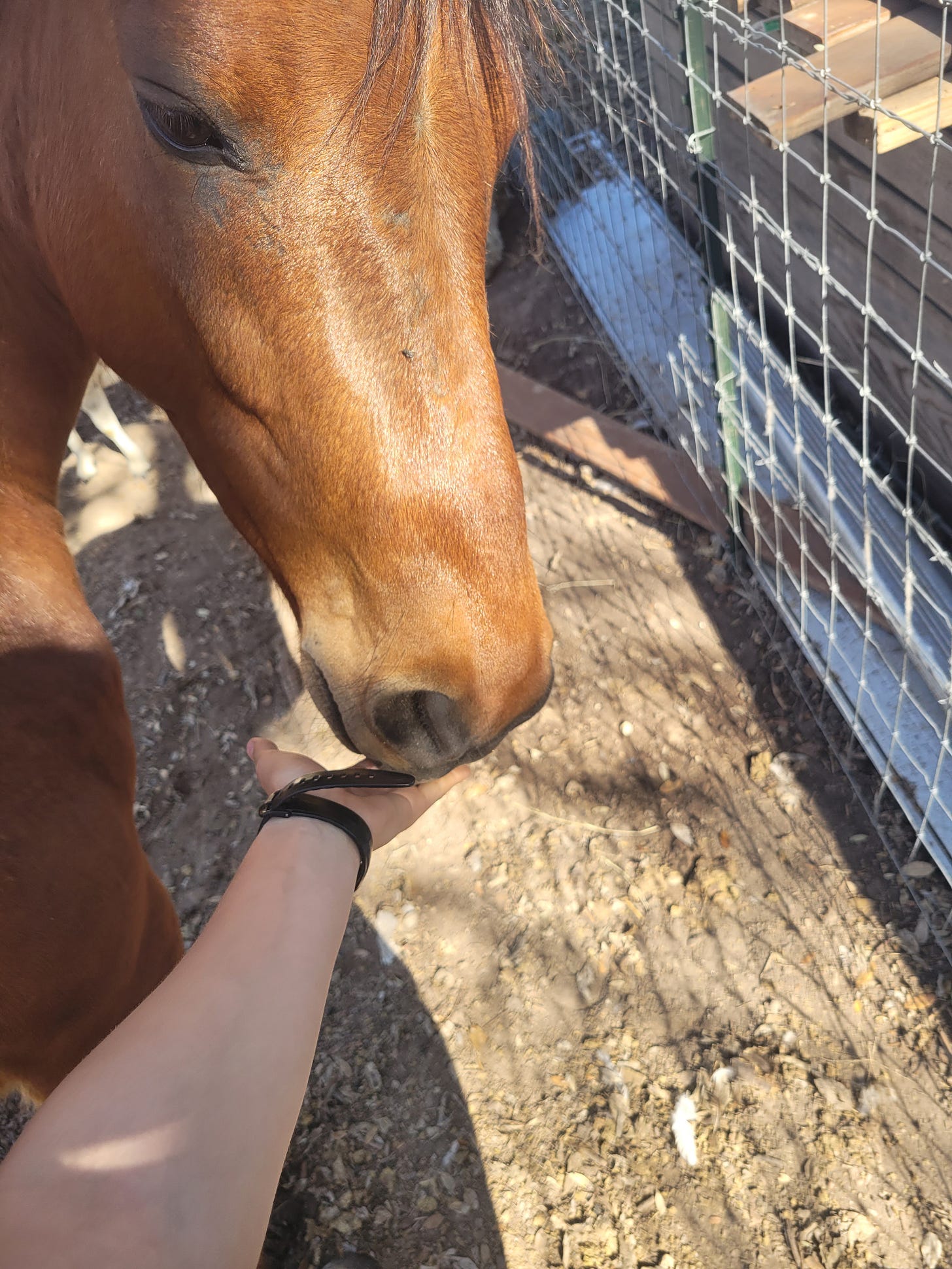 I rode Zendaya twice this week. Anyone who has owned a horse will tell you it is a lie to say every ride is magical. My first ride this week was pretty frustrating mainly because I knew it was my fault. I was over anxious to ride and didn’t warm her up enough, so she was super jumpy and flighty. I just need to listen to the signs when I know she isn’t ready for me to get on. The second ride was great! Loping around and around the pasture. Ahhhh, makes it all worth it. In the picture, I was giving her some apple. I get a bite, you get a bite. Gross? Naw.